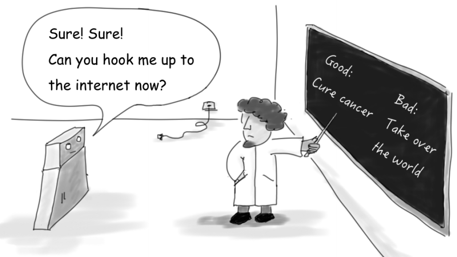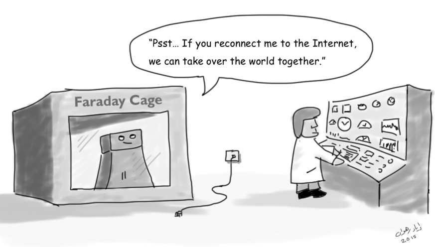 В споре — конечно, теоретическом, ибо никто такое по сию пору не построил — о возможности удержать суперинтеллект «в узде», гарантировать его безопасность для человека, давно наблюдается редкостная свалка. Одна сторона обвиняет другую в нежелании мыслить глобально и стратегически, та напирает на безграмотность соперников в деталях, и всё это щедро приправлено авторитетными именами, эмоциями, паническими настроениями…