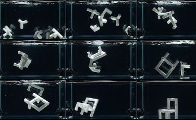 Шесть напечатанных на 3D-принтере деталей поместили в резервуар с водой, которая в данном случае выступала катализатором сборки. Несколько вентиляторов вызывали в воде турбулентность, что заставляло детали двигаться. Каждая деталь была снабжена встроенными магнитами с единственно верными точками присоединения, то есть состыковаться могли только те части, которые были задуманы чертежами финальной конструкции. Процесс сборки занял почти семь часов, но ученые полны энтузиазма и уверяют, что технология может быть усовершенствована, а в будущем можно будет собирать гораздо более крупные и сложные объекты за меньшее время.
