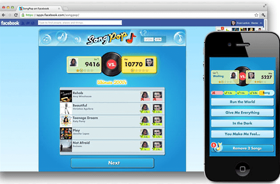Кроме того, Facebook опубликовал рейтинг из 25 наиболее популярных социальных игр 2012 года. На вершине — «музыкальная» игра SongPop, на втором месте — Dragon City, на третьем — Bike Race.