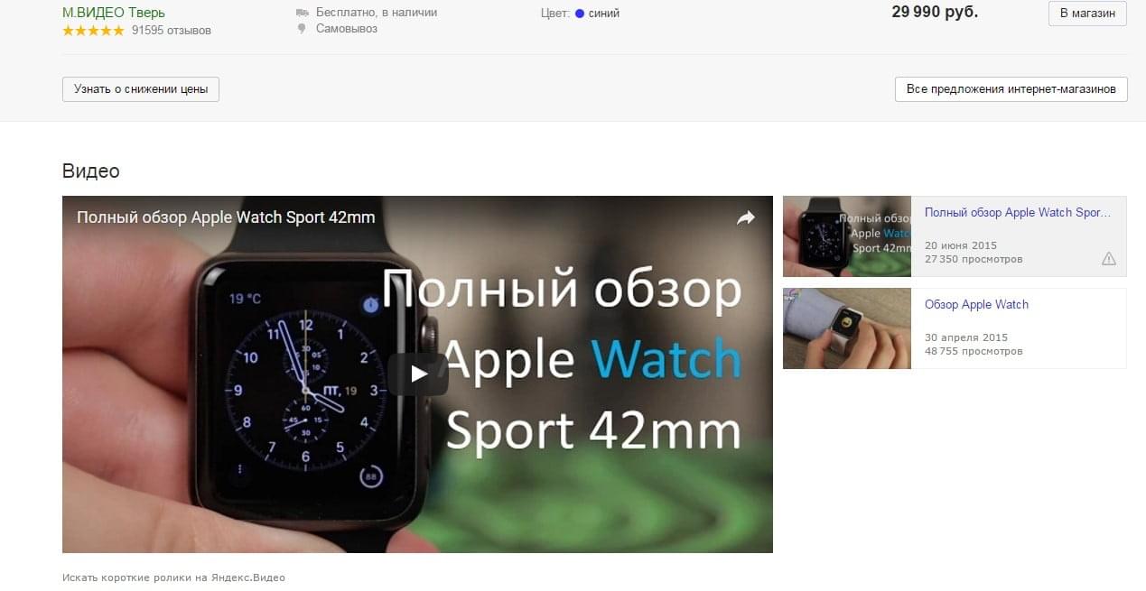 находящиеся в карточке товаров рядом с комментариями покупателей и оценками магазинов. Видеообзоры находит в Сети робот «Яндекса» и автоматически прикрепляет их к карточкам товаров. Компания не запрещает размещать в том числе и обзоры с отрицательными отзывами о товаре, видео модерируются только на наличие нецензурной лексики, или несоответствия тематике Маркета.