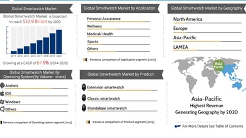 Это мнение высказали эксперты Allied Market Research. Поводом для анонса стали ожидаемые выпуски Apple iWatch и Android Wear. Появление новых функций в «умных» часах, как, например, ожидаемое Wi-Fi-радио в будущей модели Sony Smartwatch 3, будет еще более разогревать рынок. Высказываются прогнозы, что будущие модели «умных» часов будут работать не только на Android и iOS, но и на Microsoft Windows.