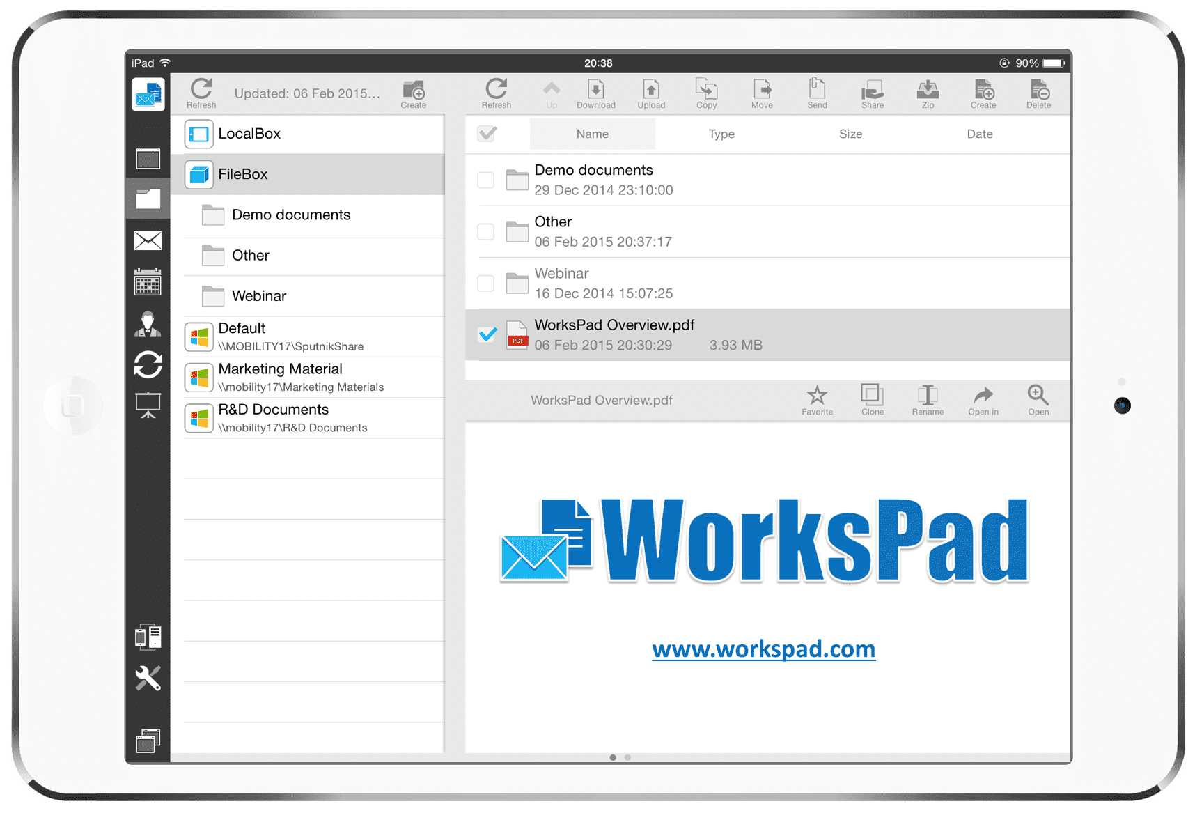 которое ранее известное как MobileSputnik, будет распространяться во всем мире под торговой маркой WorksPad (ВорксПад). Впервые в одном приложении интегрированы безопасная корпоративная почта, доступ и управление корпоративным контентом, календарями и событиями, а также функционал для проведения совещаний. Весь функционал объединен в мобильное рабочее место, с масштабируемым бэкэндом.