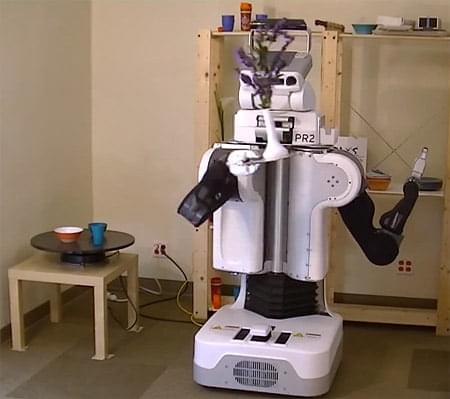 Лет пятьдесят назад человечество мечтало о роботах-слугах. Таких — в смокингах, с подносиком, чтобы не надо было ходить на кухню (где, конечно, работают роботы-повара). Но так ли легко для машины нести поднос с предметами на нём? Очень даже непросто. Впрочем, этот робот, которого запрограммировал студент Тобиас Кунц из Технологического университета Джорджии, вполне на это способен.