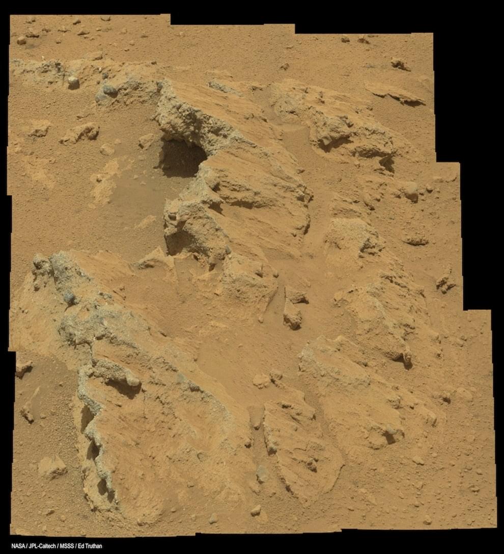 Марсоход Curiosity непрерывно фотографирует Марс, и сшивание полученных фотографий постепенно становится хобби для любителей фотографии и марсианских пейзажей. Дизайнер Эд Трютан сшил из двухмегапиксельных снимков марсианского грунта огромное полотно, на котором можно разглядеть мельчайшие детали грунта.