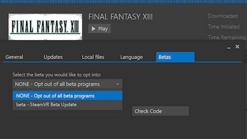 Пользователь EzioCroft в доказательство опубликовал на форуме Neogaf соответствующий скриншот, который сильно обнадёжил любителей JRPG из числа владельцев Oculus Rift: на нём показано начилие опции включения/выключения SteamVR Beta Update.