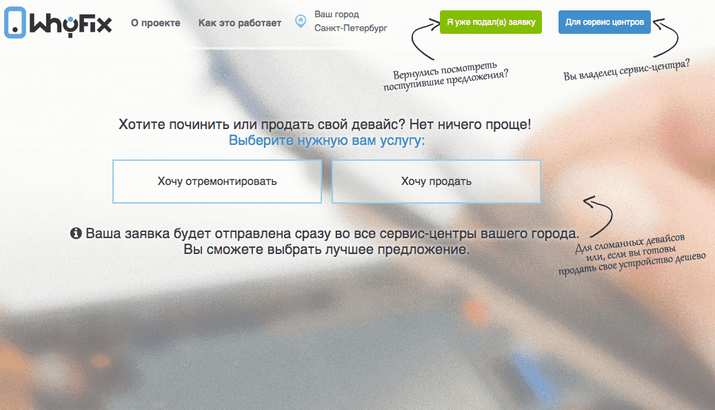 Сервис Whofix работает в пяти городах: Санкт-Петербурге, Москве, Нижнем Новгороде, Новосибирске и Екатеринбурге. Он соединяет пользователей с центрами по ремонту и выкупу различных устройств, причем, ремонт можно заказать и на дому. На данный момент к Whofix подключены около 380 сервис-центров. Комиссия с них не взимается, также как и с клиентов.