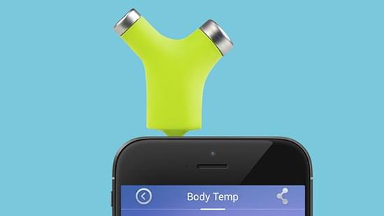 Новое смарт устройство от JoyWingTech, работающее с iOS и Android смартфонами, представляет собой бесконтактный термометр. Он подключается к аудио разъему смартфона и автоматически передает показания в мобильное приложение. Форма устройства позволяет видеть показания на экране смартфона в момент измерения температуры. Приложение дает возможность создавать отдельные профили для каждого члена семьи.