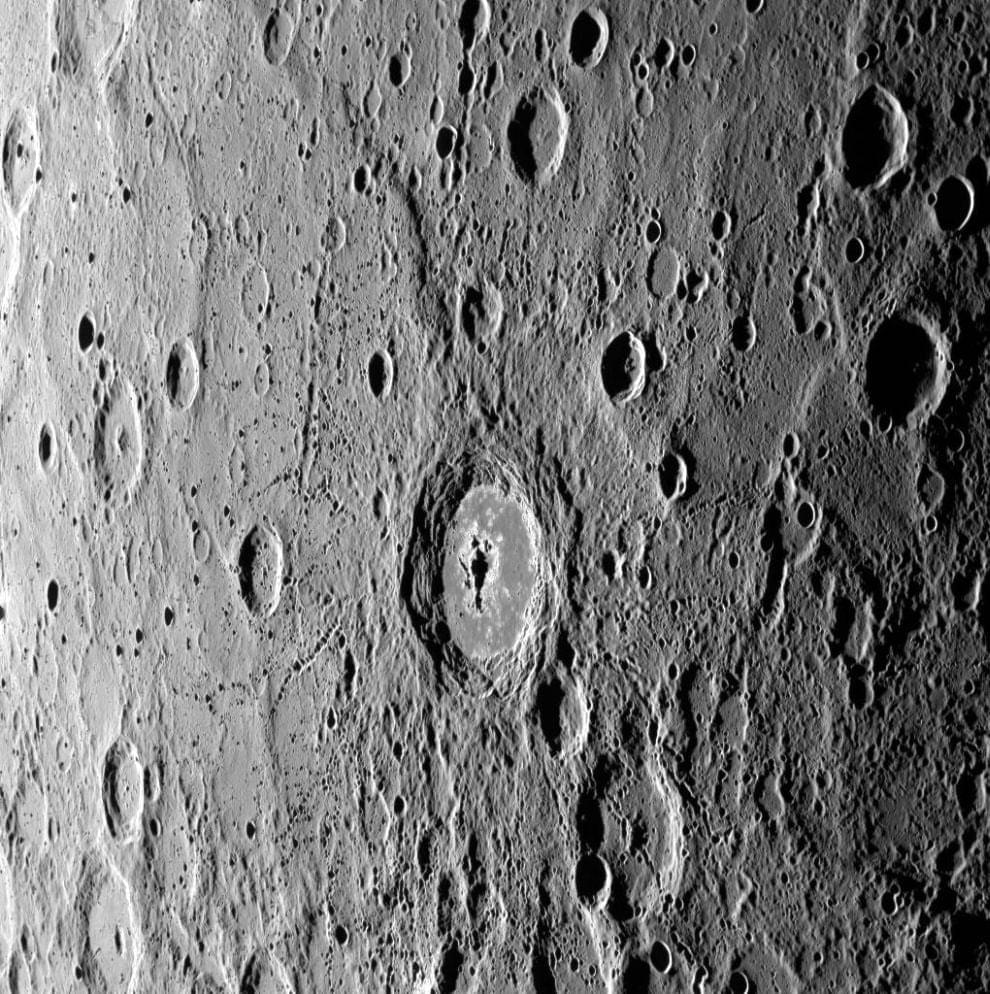 Во-вторых, строение поверхности планеты указывает на то, что она в течение очень долгого времени оставалась геологически активной. На это указывает, например, то, что у одного из крупнейших кратеров, возникших вследствие столкновения с метеоритами, дно располагается местами выше, чем внешние края, — такое может быть следствием только мощных геологических процессов под поверхностью.