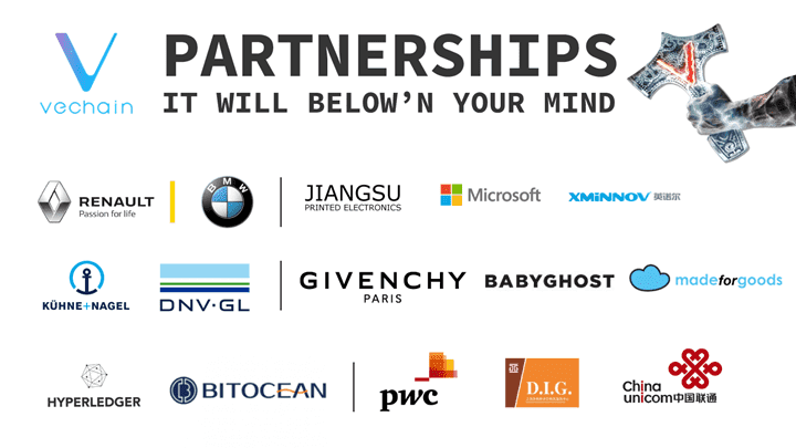 Проект Vechain представляет собой BaaS-платформу, ориентированную на устранение проблем в управлении цепочками поставок. Vechain разрабатывается с 2015 года, в настоящее время в состав проекта входит 24 компании, в том числе Deloitte, Microsoft, Renault, PricewaterhouseCooper, DB Schenker, TCL communication, China Unicom, BMW и LV China. Кроме того, проект заключил договор партнерства с крупнейшей китайской страховой компанией People’s Insurance Company of China (PICC).