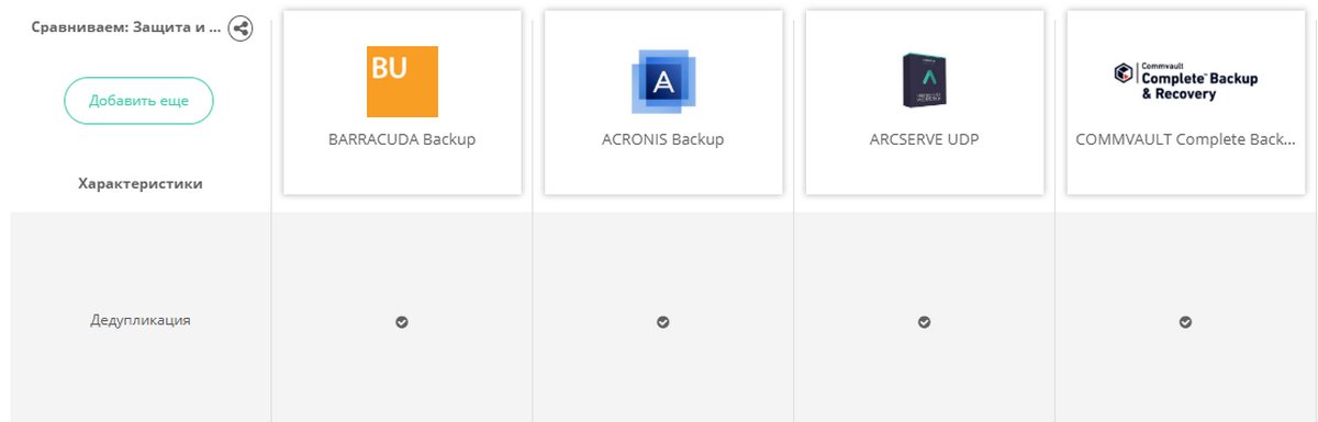 Таблица сравнения по характеристикам продуктов для защиты и восстановления данных (Backup and Recovery).