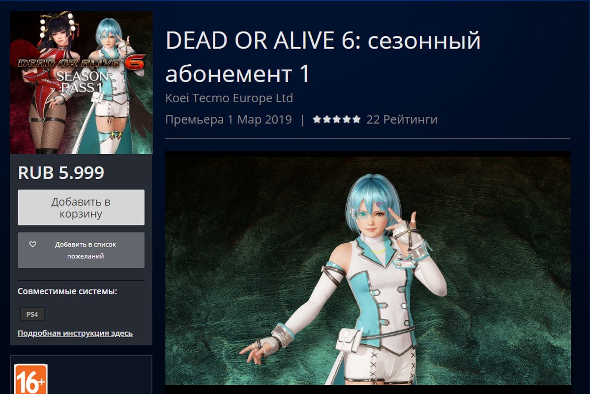 Koei Tecmo объявила цены на первый сезонный пропуск к Dead or Alive 6. Стоимость в валюте – 93 доллара. Соответственно в рублях – 6 тысяч рублей. Плюс 4 тысячи за игру на приставках. При этом в Steam комплект дополнений стоит 1549 рублей.