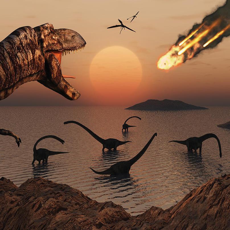«Почему вымерли динозавры?» — большинство палеонтологов придерживаются точки зрения, что около 66 миллионов лет назад гигантский астероид диаметром в 10км столкнулся с нашей планетой в месте, где сейчас располагается Северная Америка. В результате удара поднялось огромное облако пыли, охладившее Землю и разрушившее озоновый слой, защищающий все живое от воздействия космической радиации.
