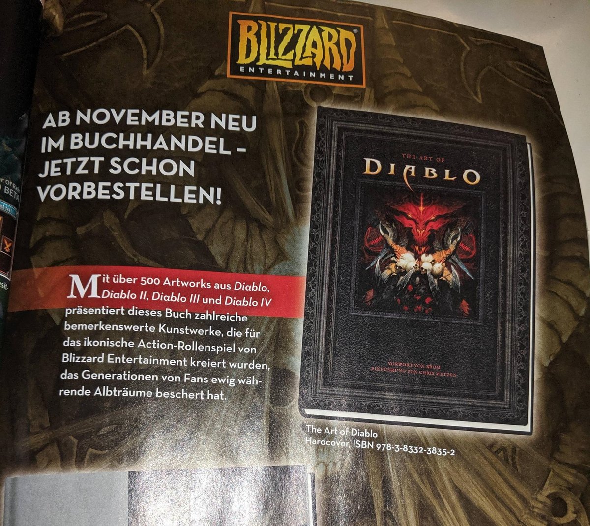 Похоже, Diablo IV все же анонсируют на BlizzCon 2019, который пройдет с 1 по 2 ноября. Об этом пишут не только инсайдеры, но и указывают некоторые находки фанатов. В журнале Gamestar нашли рекламу артбука серии Diablo, в описании которого есть упоминание четвертой части.