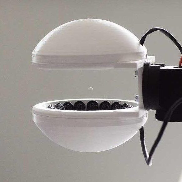 Устройство выглядит как разделенная на две части сфера, которая будет устанавливаться на место «кисти» стандартной руки робота. Каждая половина сферы внутри покрыта множеством небольших динамиков. Динамики излучают ультразвуковые волны, которые контролируются с помощью специального ПО. Между двумя половинами сферы можно подвешивать небольшие объекты. Это полезно в тех случаях, когда физический контакт с объектами не желателен — например, для защиты от статического электричества или загрязнения.