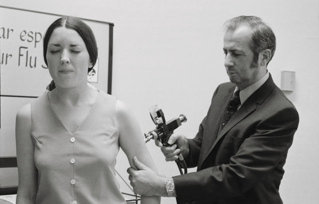 В 1960-е годы технология стала использоваться для вакцинации, однако к концу 80-х – началу 90-х годов привлекательность струйных прививок начала ослабевать, поскольку они сопровождались риском перекрестного заражения и внесения инфекций. Как выяснилось, вместе с лекарством безыгольные инъекторы могли заносить в организм находившиеся на поверхности кожи бактерии или грибки, а кожная слизь, которую пистолет забирал у пациента, могла передаваться следующему человеку.