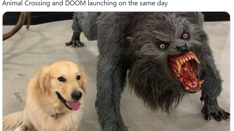 Также «Animal Crossing: New Horizons» вышла одновременно с DOOM Eternal, что в свою очередь породило множество мемов и кроссоверов.