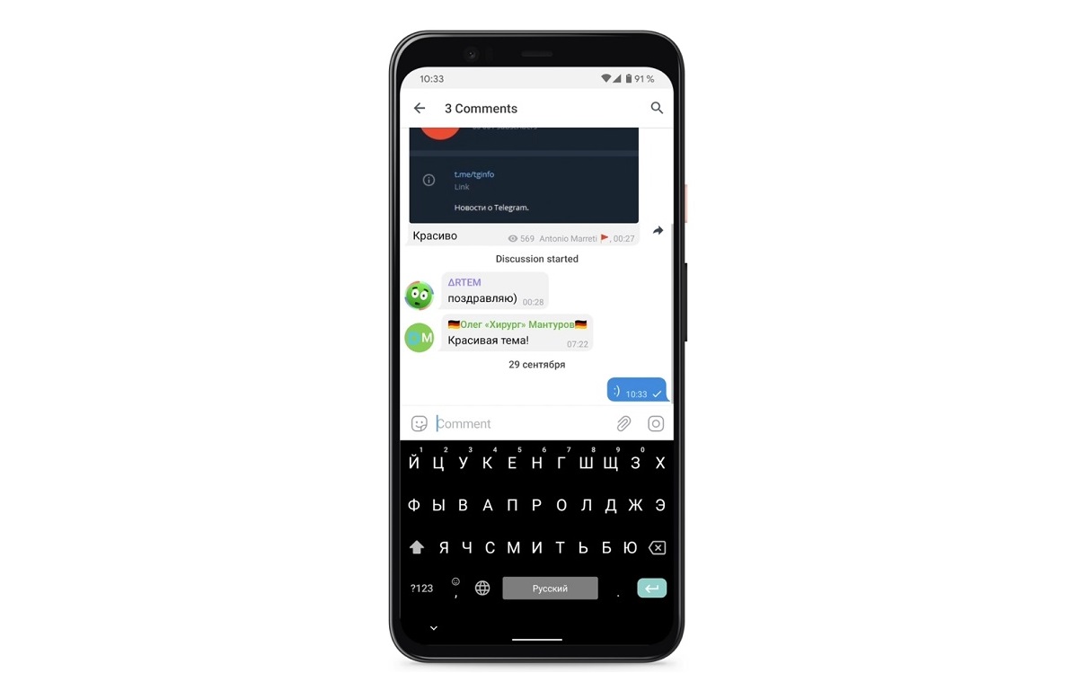 Утром 29 сентября стала доступна бета-версия клиента Telegram 7.1.0 для устройств на Android. Обновление можно скачать по ссылке. Одно из главных нововведений — возможность комментировать посты в каналах.