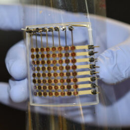 Специалисты из Университета Миннесоты смогли создать гибкий дисплей на светодиодах с помощью 3D-печати. Они напечатали квадрат 3,8х3,8 см, состоящий из шести слоев. Первый в мире напечатанный дисплей состоит из 64 светящихся пикселей. Его прочность позволяет выдержать 2000 сгибаний.
