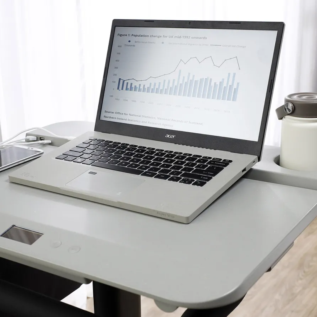Велосипедный стол Acer работает в режимах «Работа» и «Спорт». В спортивном режиме можно отодвинуть стол назад, чтобы освободить место для наклона вперед и провести полноценную тренировку. Также у стола есть подставка под телефон и приложение для смартфона, позволяющее узнать количество минут, калорий и ватт, потраченных или произведенных соответственно в ходе тренировки.