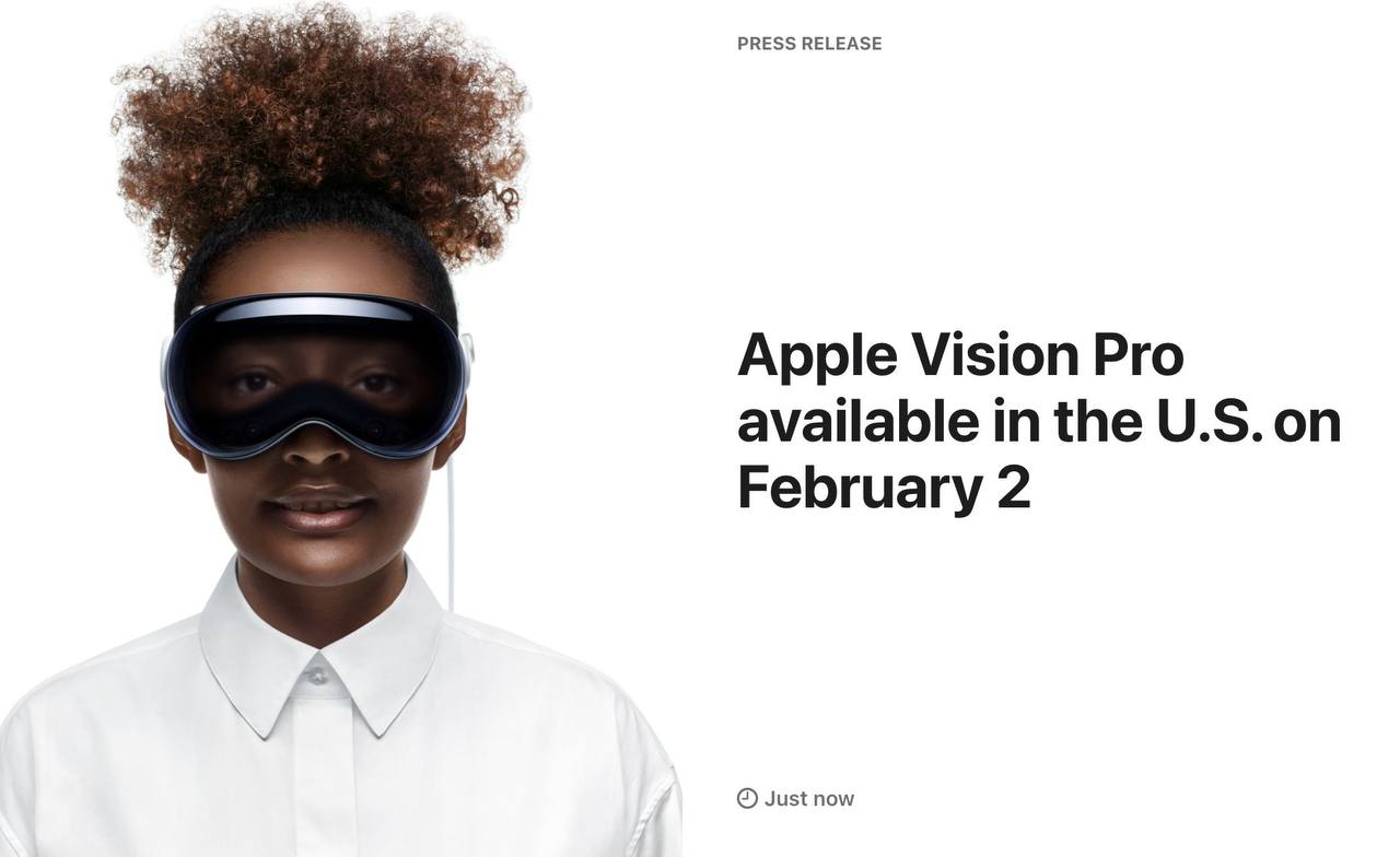 Apple Vision Pro поступит в продажу 2 февраля. Для рынка США предварительный заказ можно будет оформить уже 19 января.