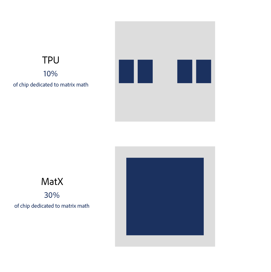 Микросхемы mATX разработаны с учетом экономии ресурсов при обработке большого объема входных данных и производственного вывода. Они достигают максимальной производительности при таких рабочих нагрузках, как большие модели на основе трансформаторов, более 20B параметров и вывод с участием тысяч одновременных пользователей.