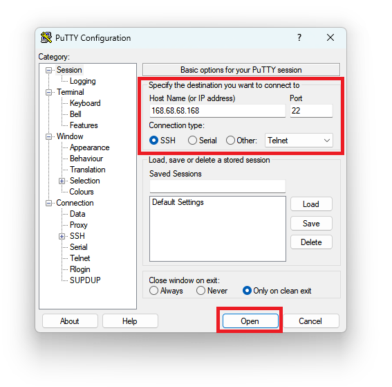 Теперь можно приступить к настройке сервера. Подключаемся к серверу по SHH (для этого можно воспользоваться встроенным терминалом или удобным сторонним ПО, например, PuTTy).