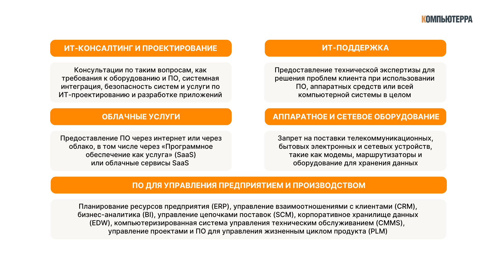 Санкции ограничивают облачные услуги, связанные с ПО для управления предприятием и производства.