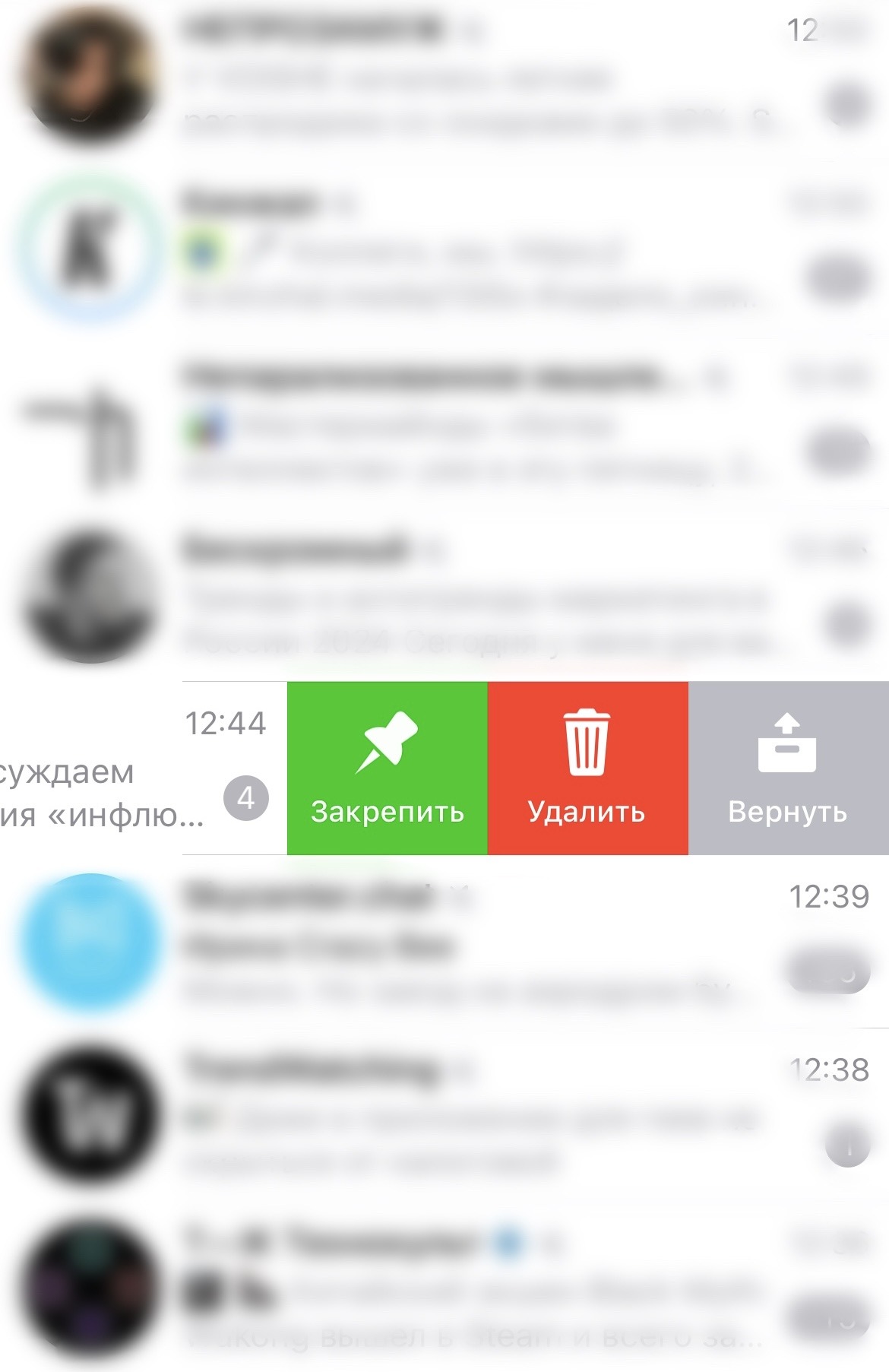 - Сделайте свайп влево на этом чате.