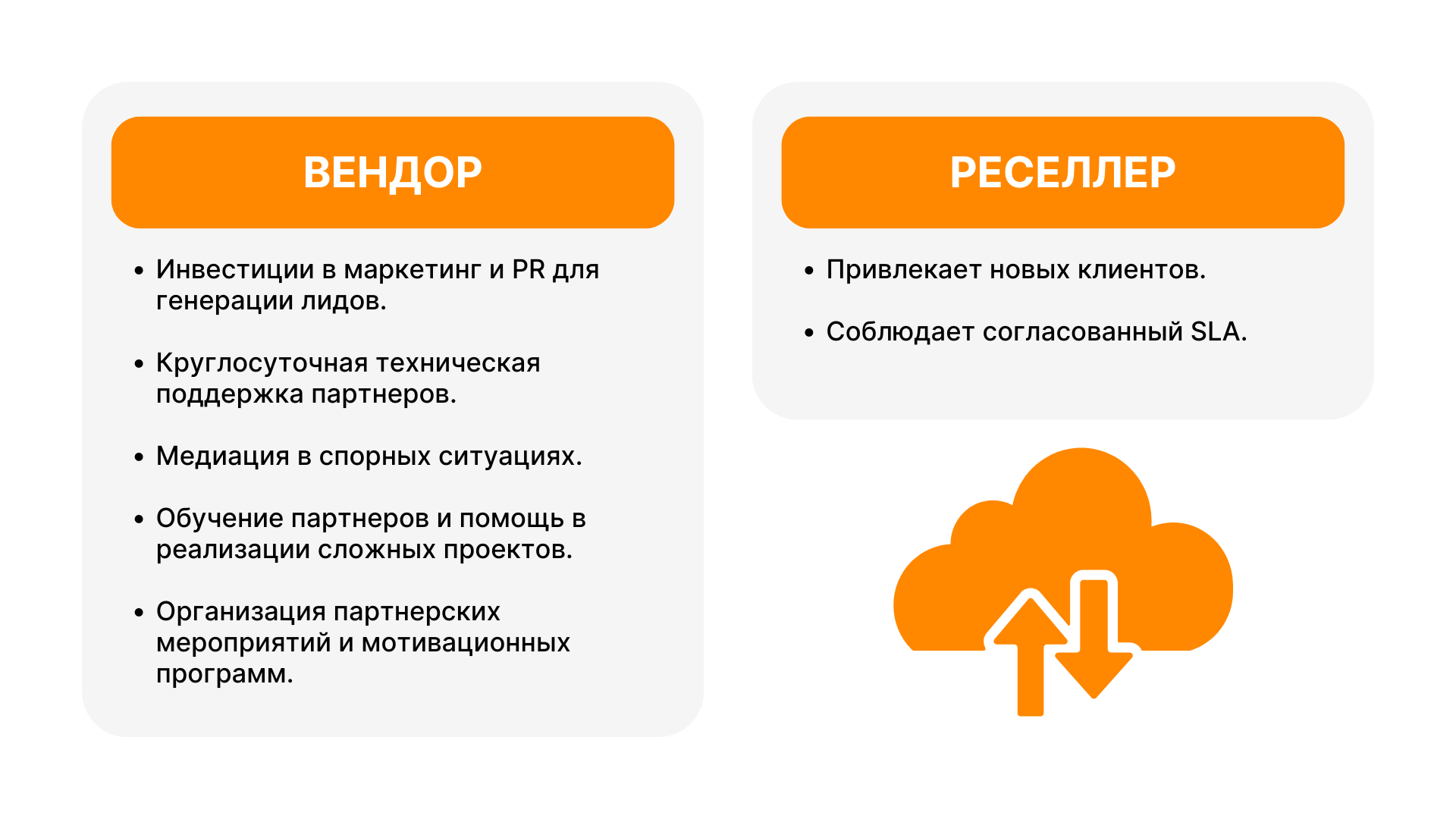 Отношения вендора и реселлера логично назвать партнерскими. У обеих сторон есть обязательства.