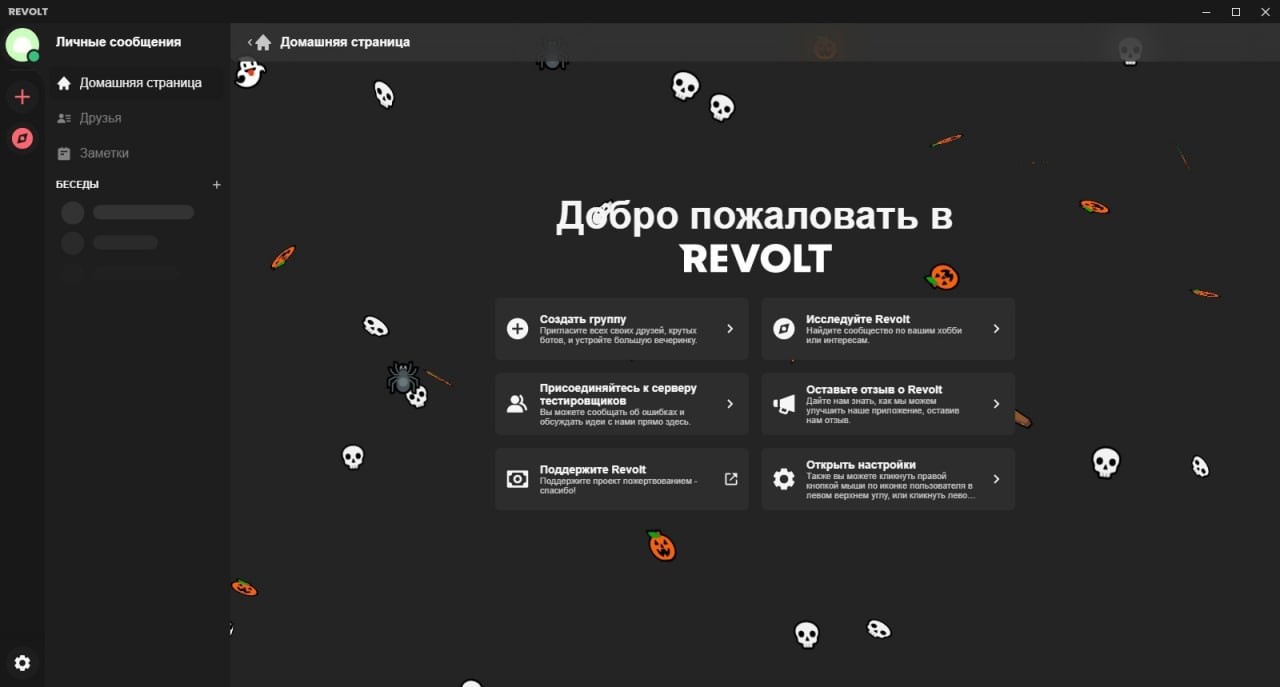 Revolt заявляет о себе как о прямом конкуренте Discord еще с 2021 года. Здесь можно найти все необходимое для организации общения в геймерских сообществах: голосовые и видеочаты, текстовые каналы, возможность настройки ботов, а также интеграцию с игровыми сервисами.