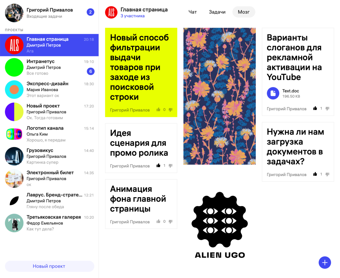 Мессенджер и трекер задач от студии Артемия Лебедева. «Интранетус» представляет собой инструмент для небольших креативных команд, совмещающий в себе функции общения и управления проектами.