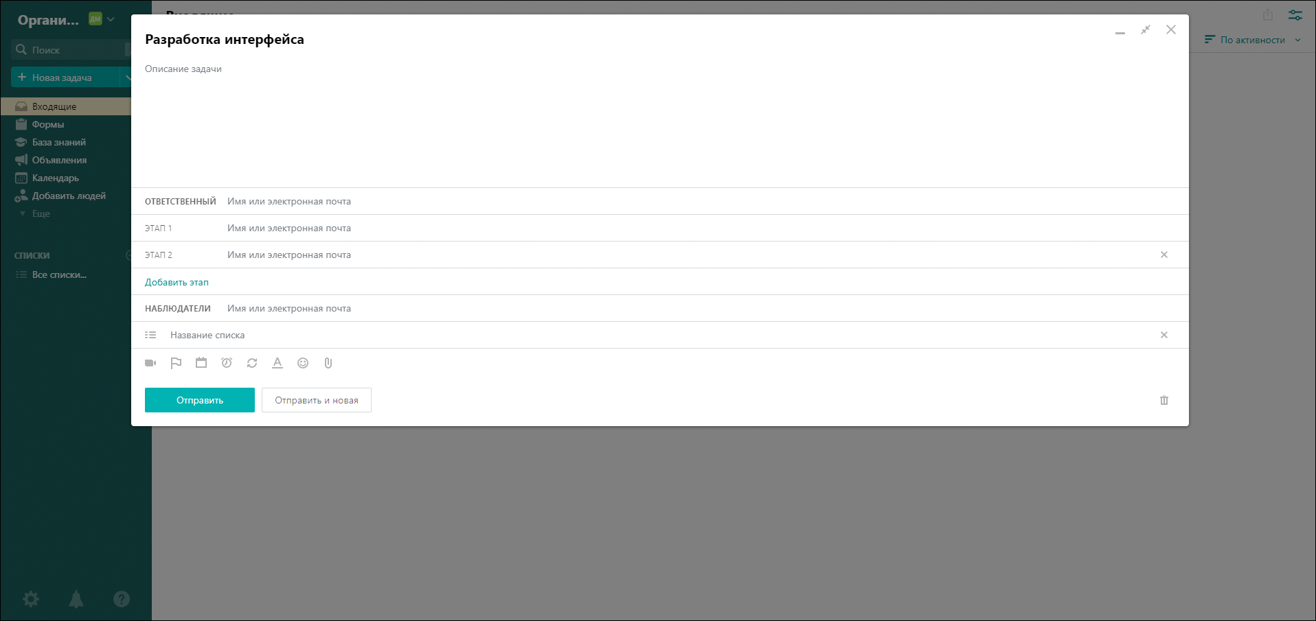 - Минимальные возможности для сортировки поручений — их можно только распределять по вручную создаваемым спискам.