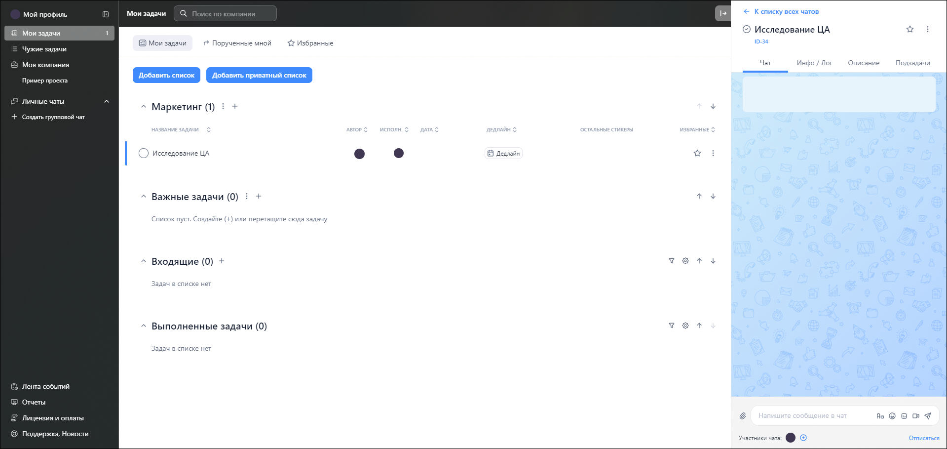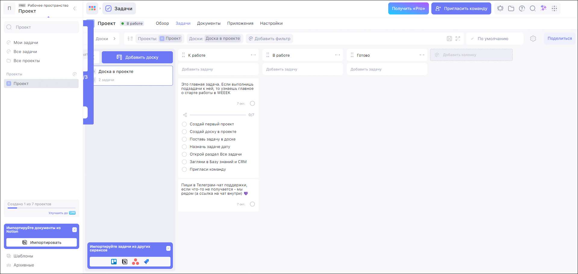 - В бесплатной версии не ограничивает число проектов и заданий.