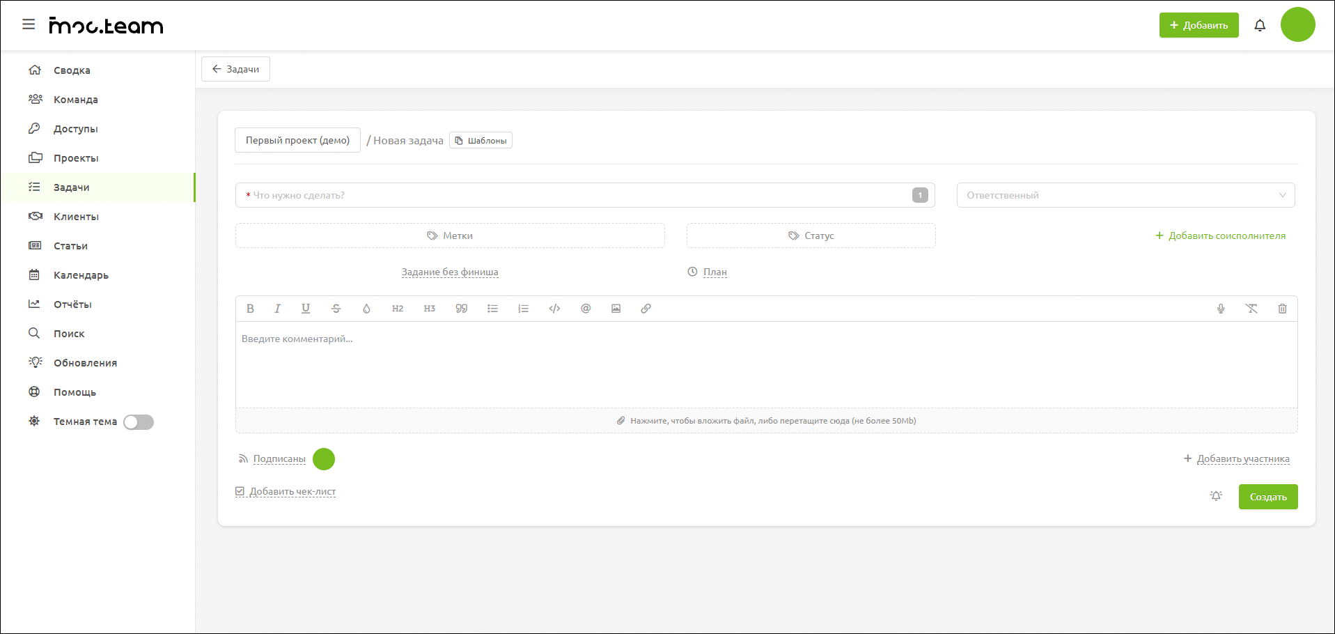 - Moo.Team — в этой системе легко разобраться, и даже без подписки вы получаете весь доступный функционал.