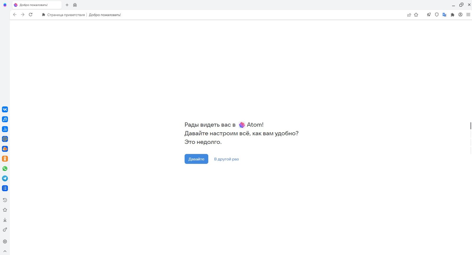 Atom — это минималистичный и легкий браузер от Mail.ru на базе Chromium с акцентом на безопасность и приватность.
