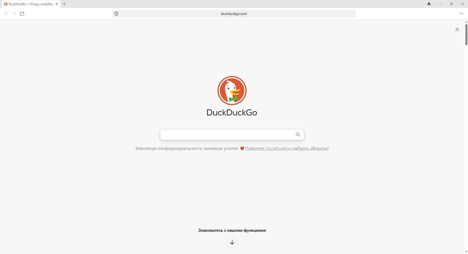 - DuckDuckGo не хранит историю поиска и не собирает личные данные.