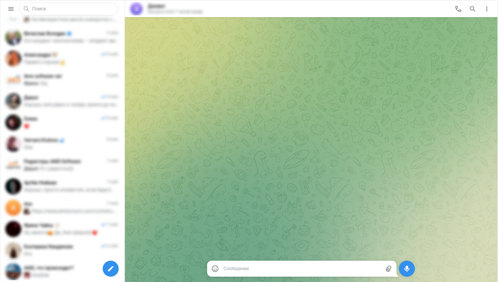 - Запустите мессенджер и откройте чат, в который хотите скинуть изображение.