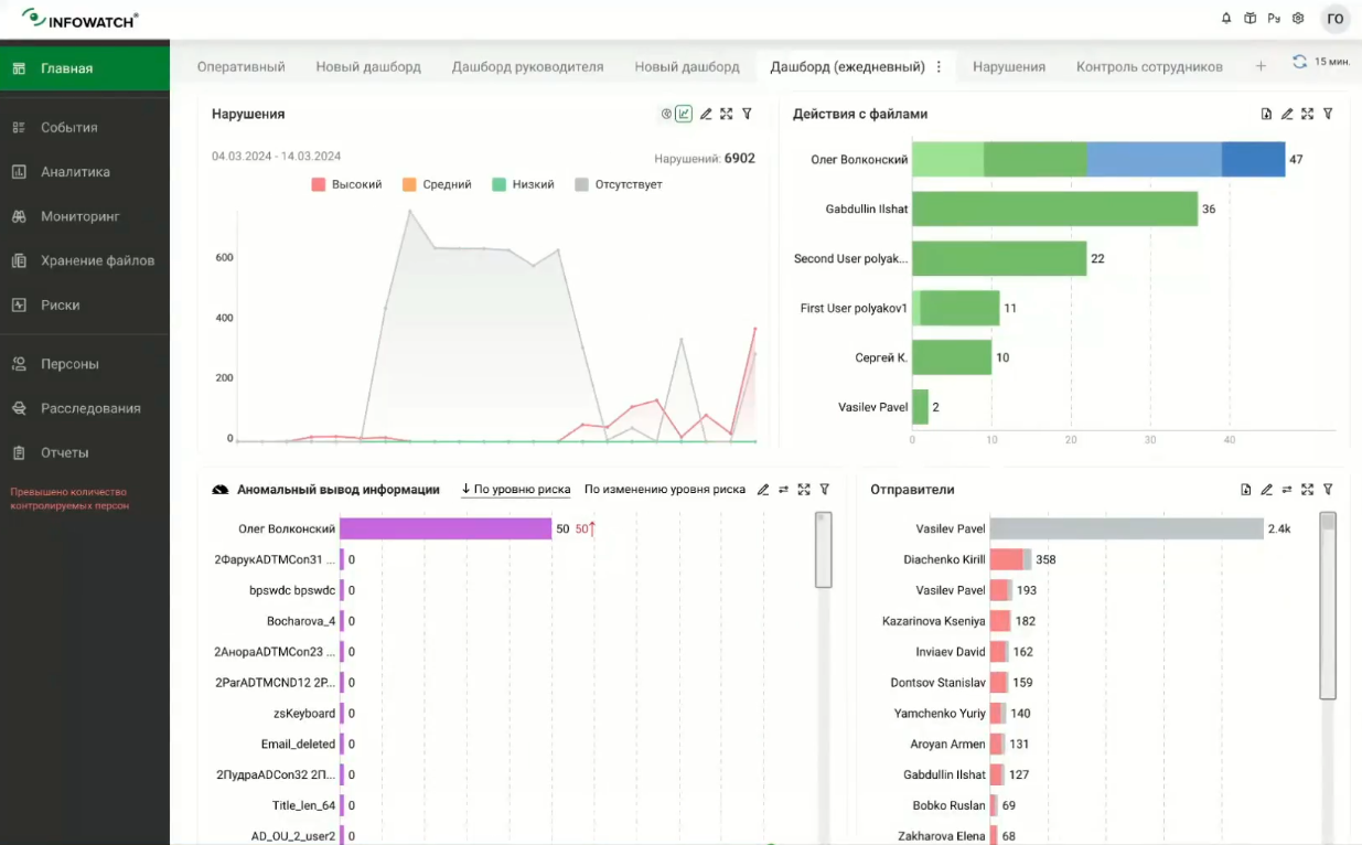 InfoWatch Traffic Monitor предсказывает потенциальные утечки информации до их возникновения и предлагает интуитивно понятный интерфейс для анализа инцидентов и управления безопасностью. Это платное решение подходит для организаций, стремящихся повысить безопасность и защитить корпоративные данные.