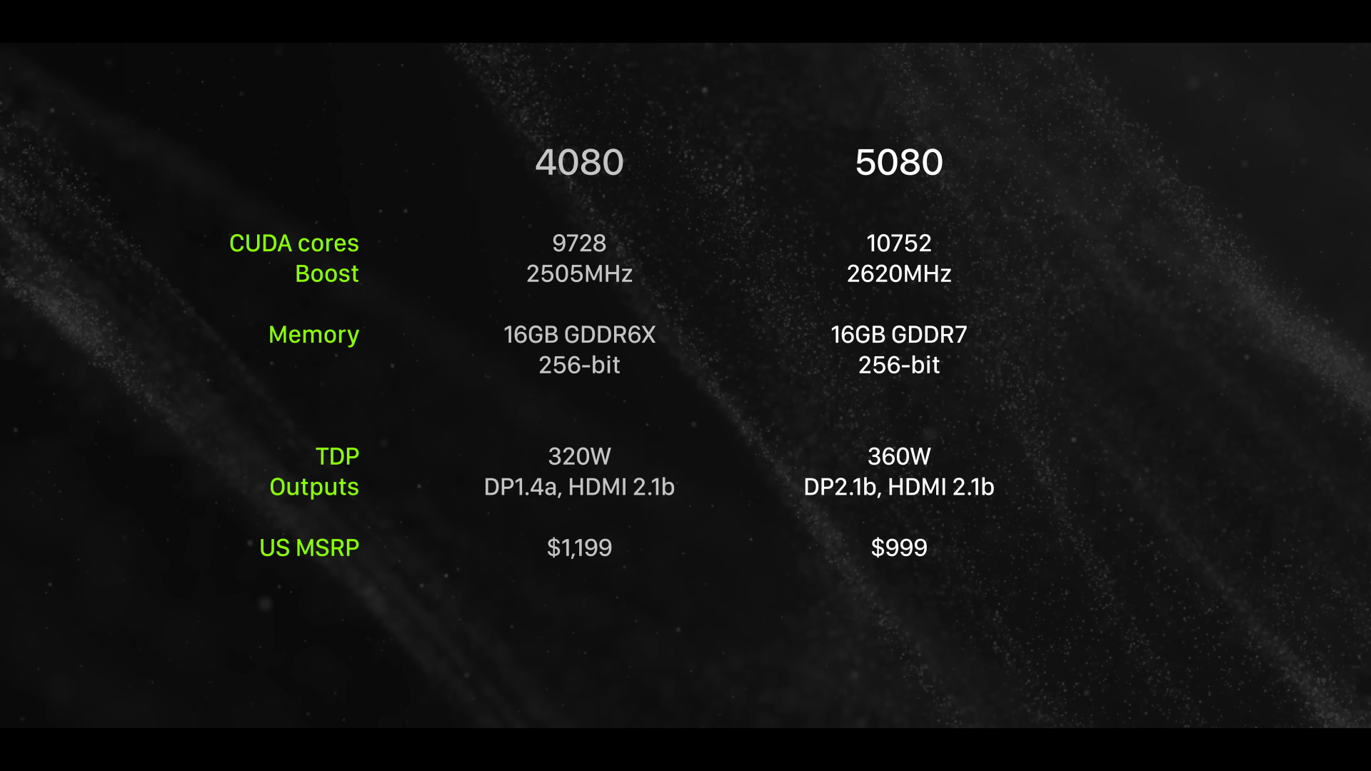 - 15% в пользу RTX 5080 по сравнению с RTX 4080;