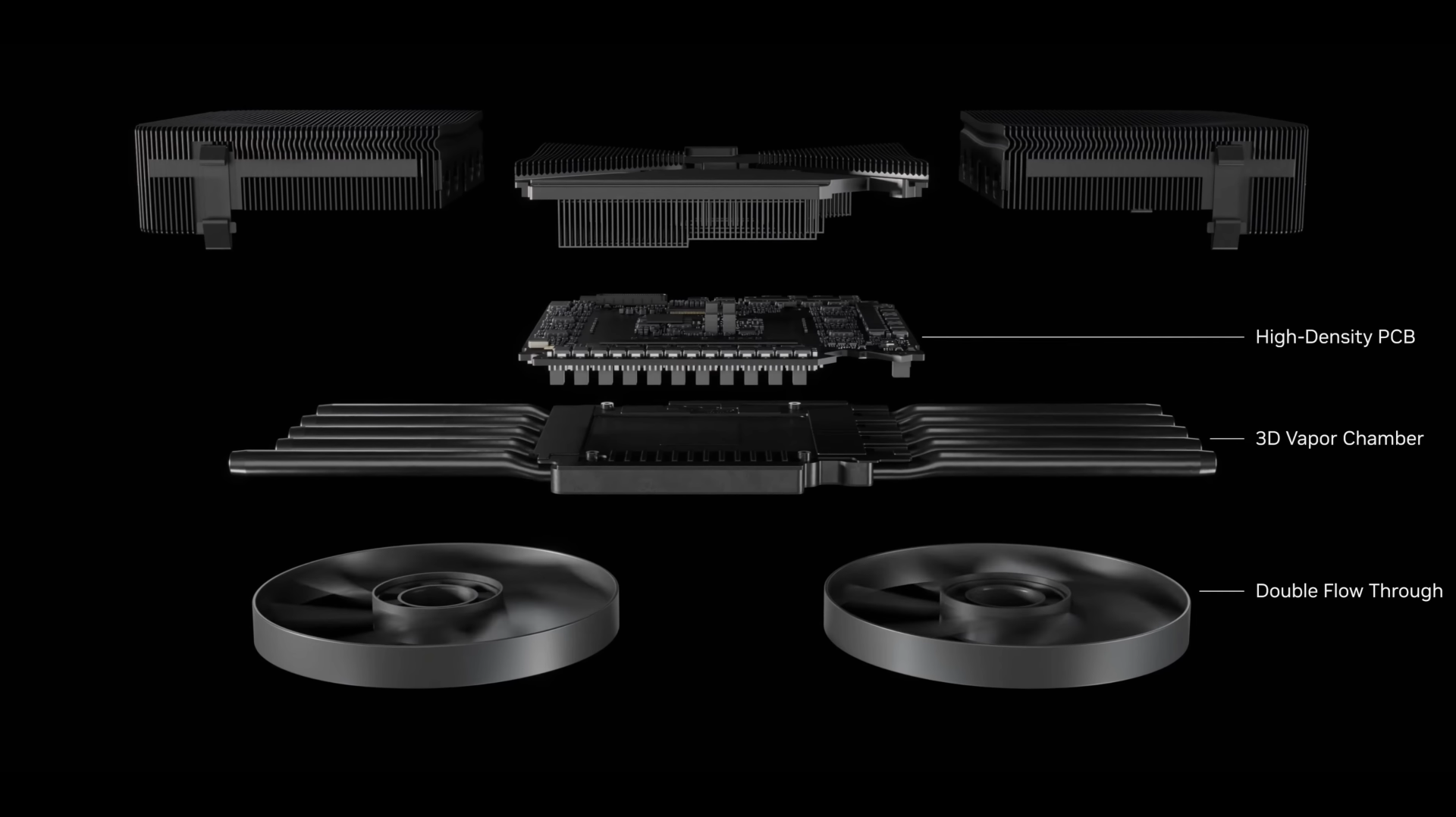 Сделать GPU компактнее удалось за счет ультракомпактной печатной платы и сверхтехнологичной системы охлаждения, разработанной с нуля. В ней скомпонованы высокоэффективная медная испарительная камера с так называемыми испарительными «колоннами», оребрение радиатора с рассчитанными на компьютере углублениями для достижения одинаковой продуваемости на всей его площади, а вместо обычной термопасты на кристалл нанесен жидкий металл. Причем он защищен от окисления и вытекания тройным резиновым барьером.