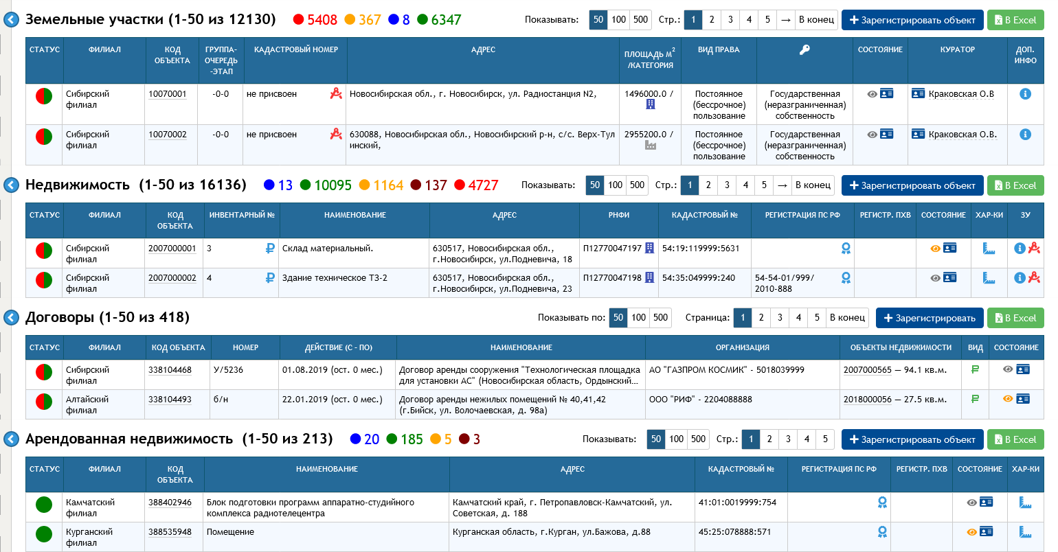 Система обеспечивает учет объектов имущественного фонда: земельных участков, зданий и сооружений, движимого и недвижимого имущества, транспортных средств, а также управление всеми этапами их жизненного цикла.