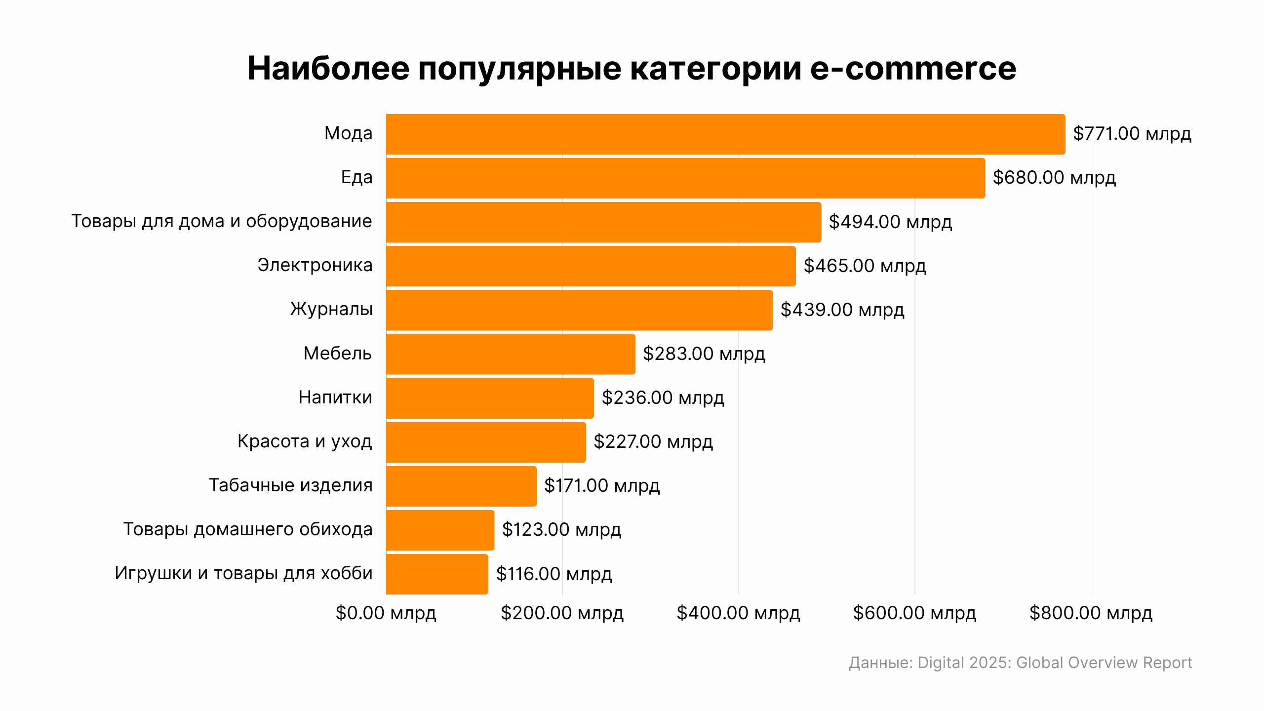 Около 56% взрослых интернет-пользователей совершают покупки в сети каждую неделю, что эквивалентно 1,7 млрд онлайн-транзакций за семь дней. Особенно активно покупатели приобретают повседневные товары, включая продукты питания, одежду и электронику.