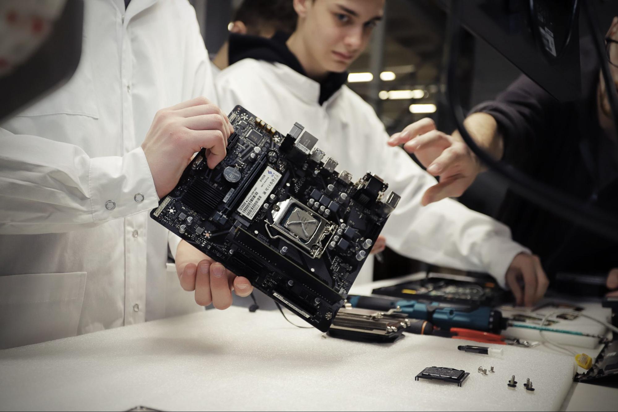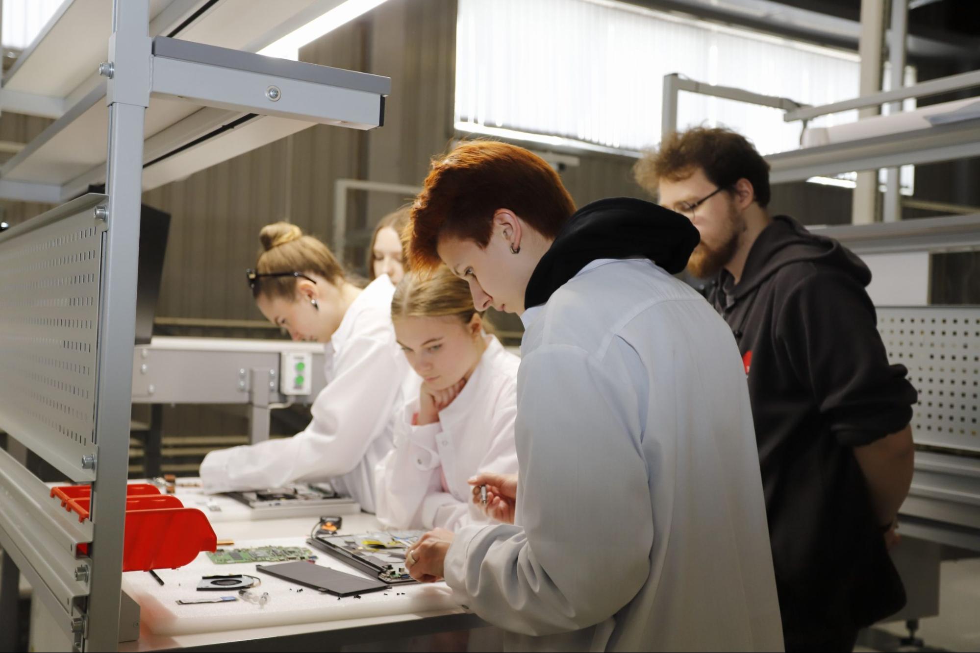 Вместо скучных лекций учащиеся отправились в увлекательное технологическое путешествие. После краткого, но содержательного знакомства с компанией они получили возможность изучить практические аспекты современного производства компьютерной техники.