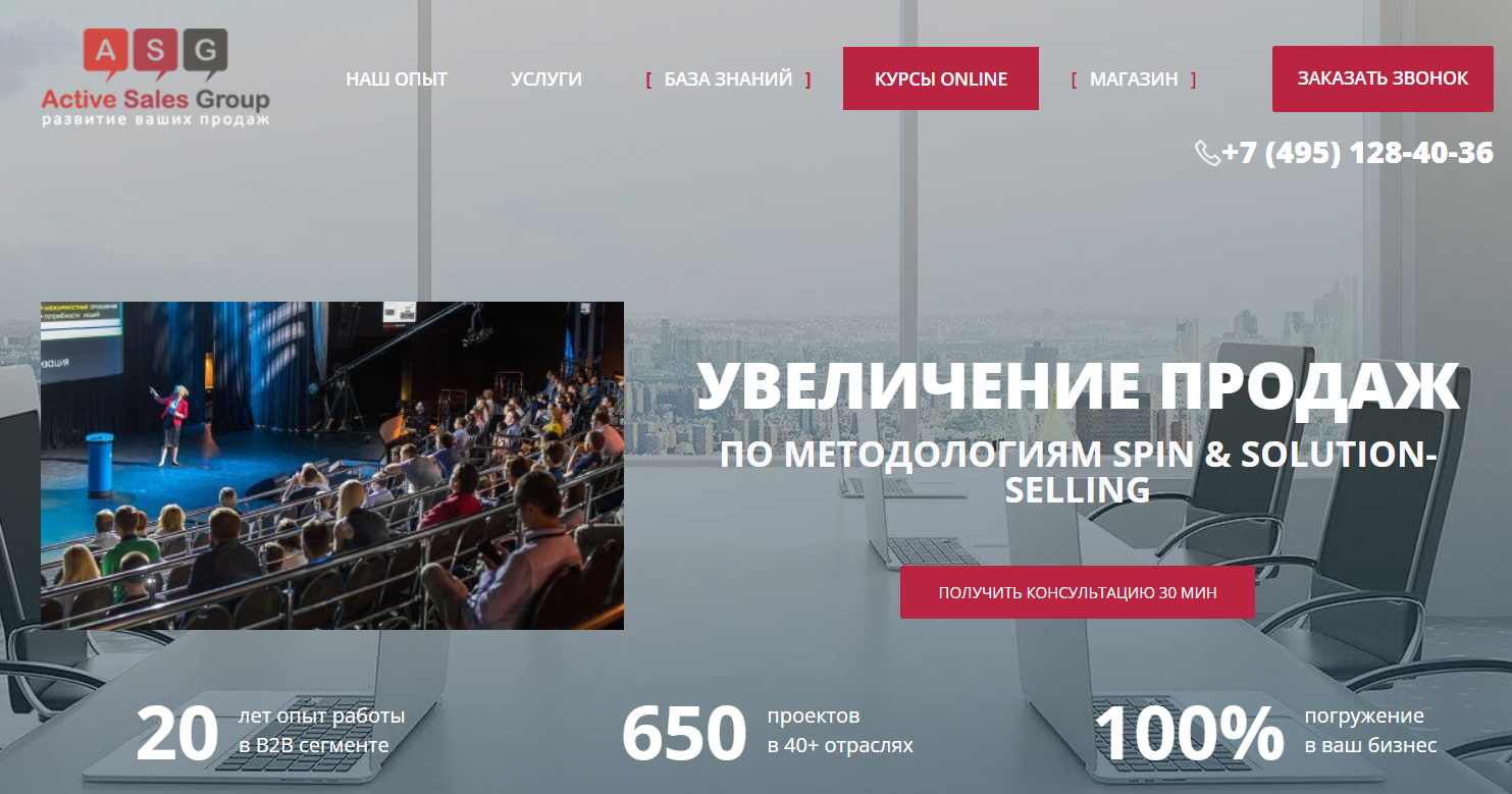 Также Active Sales Group разрабатывает для клиентов индивидуальные скрипты, стандарты и процедуры продаж, чтобы новая методология прочно внедрилась в работу отдела. В сумме, их методики представляют собой комплексный подход — от оценки текущей ситуации до обучения персонала и совместной реализации плана по росту продаж.