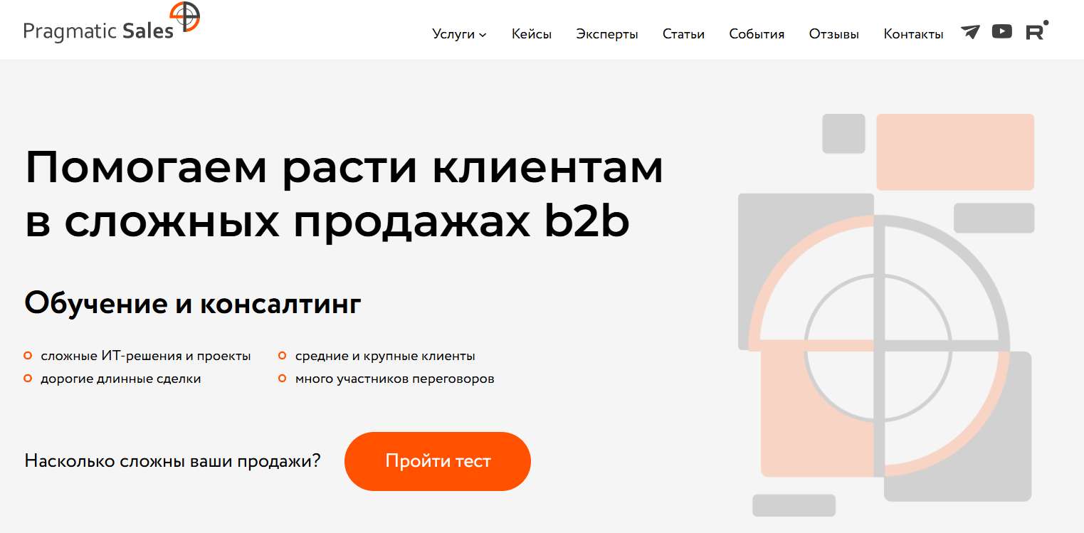 В целом услуги Pragmatic охватывают весь цикл развития сложных продаж — от обучения навыкам продажников и руководителей коммерческих служб до консалтинга по оптимизации воронки и поддержки при внедрении новых процессов.