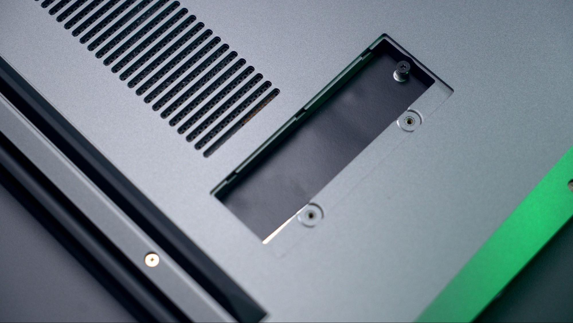 Отдельно отметим нишу для установки дополнительного M.2 SSD на нижней панели. Она крепится на двух винтах — не нужно разбирать ноутбук для апгрейда.