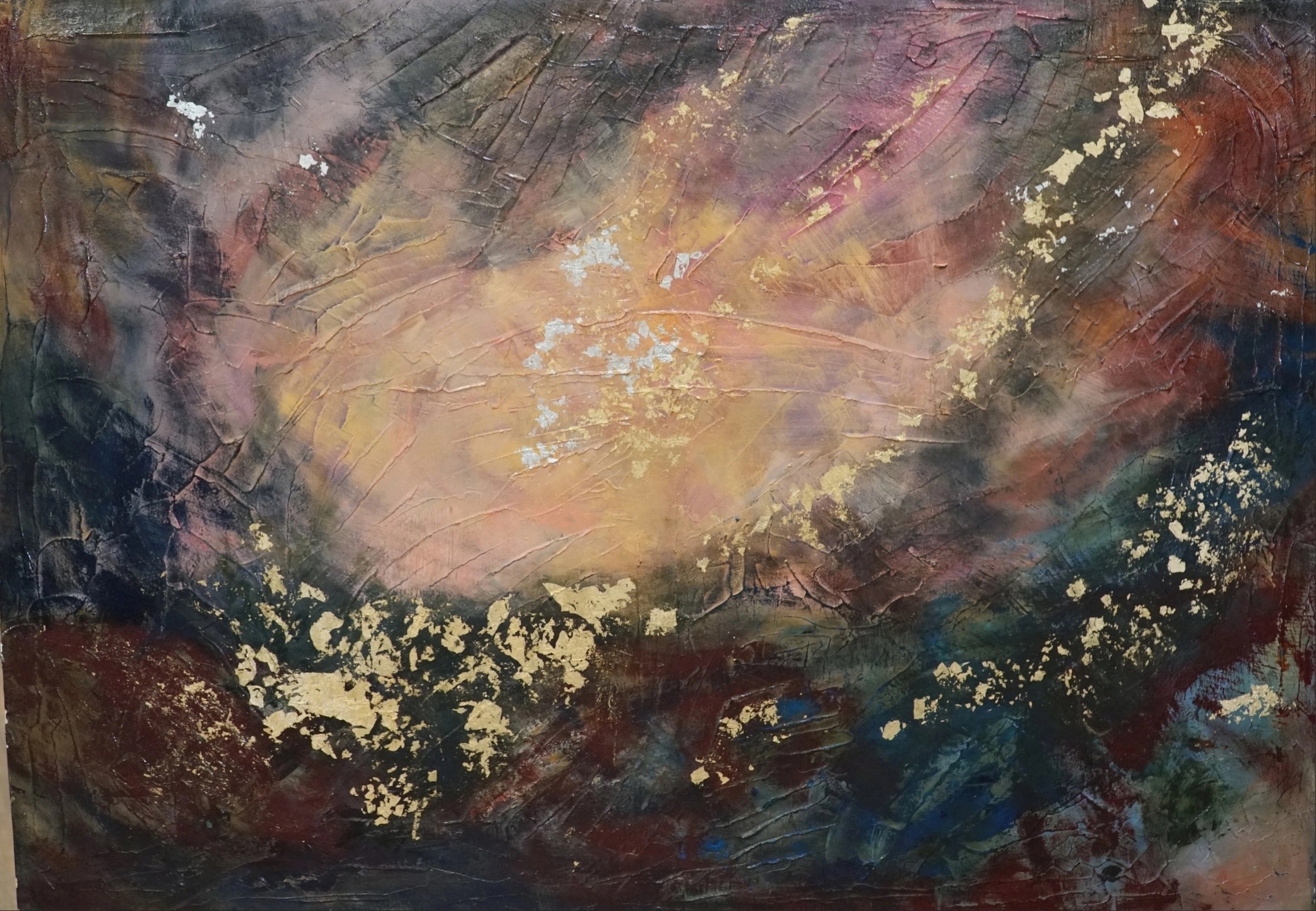 Центральное место экспозиции заняла картина Инги Дороховой «Все связано» или «CompuTerra vita Homo Creativu», созданная специально к выставке. Символом произведения стала пчела — образ творца, способного извлекать из многообразия информации суть и трансформировать её в художественный образ. «Изобилие, информация, возможности — вот что открывает перед человеком мир технологий», — отметила художница, демонстрируя композицию, сочетающую гексагональные узоры, поталь, образы из сказок Бажова и отсылки к чат-ботам.