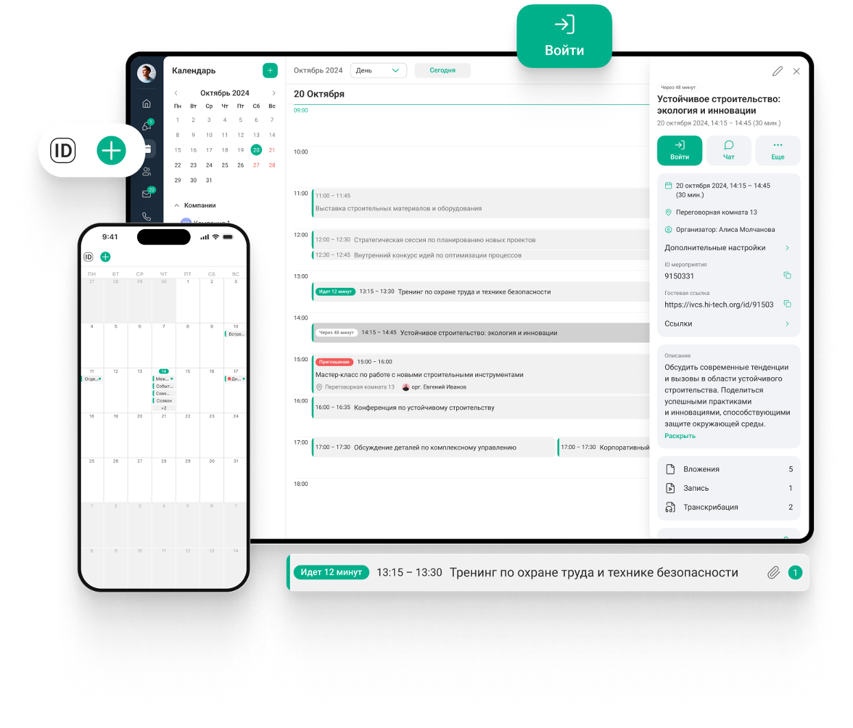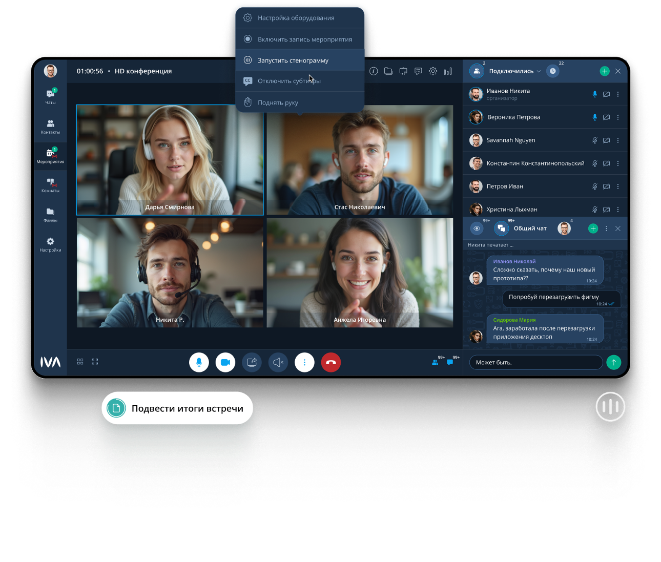 Кроме того, в IVA One внедрены элементы искусственного интеллекта на базе собственного сервиса распознавания речи IVA Terra — он помогают, например, делать автоматические расшифровки встреч и их саммаризацию, или запустить онлайн-переводчик во время ВКС.