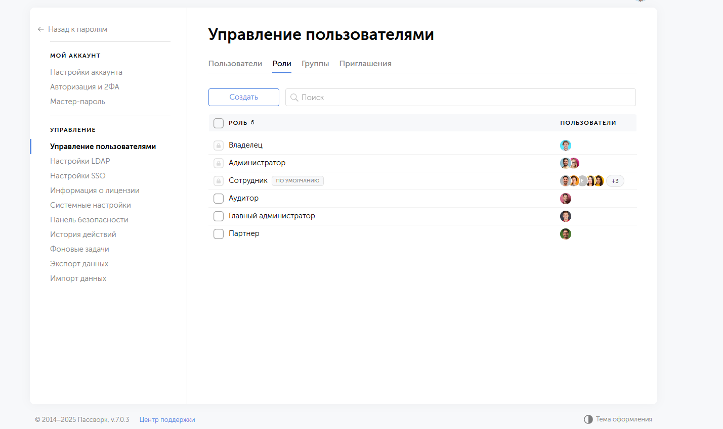В Пассворк 7.0 обновлен и подход к управлению доступами — система стала гибче и ближе к стандартам корпоративных ИТ-инфраструктур.