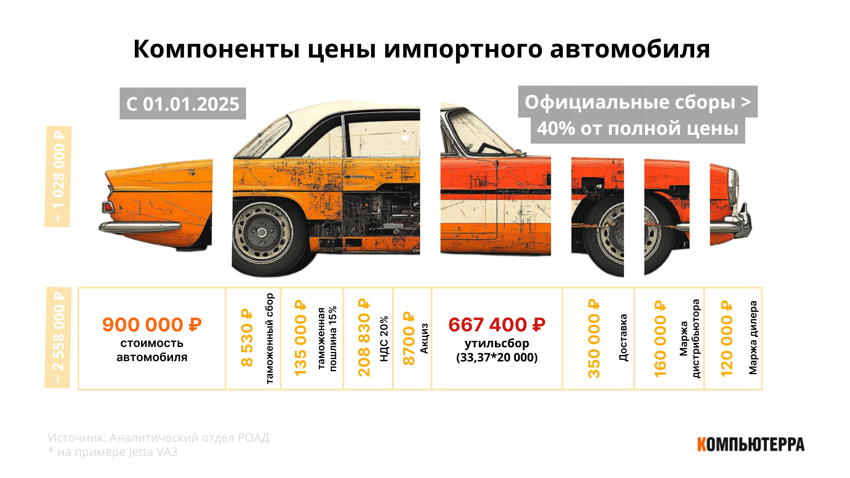 Однако у многих покупателей возникает закономерный вопрос: почему автомобиль, стоимость которого на заводе составляет 900 тыс. руб., оказывается в автосалоне по цене 2,5 млн руб. и выше? Представители отрасли помогли «Компьютерре» разобраться, из чего складывается цена, каково положение дилеров и какие меры могли бы способствовать сбалансированному развитию рынка.